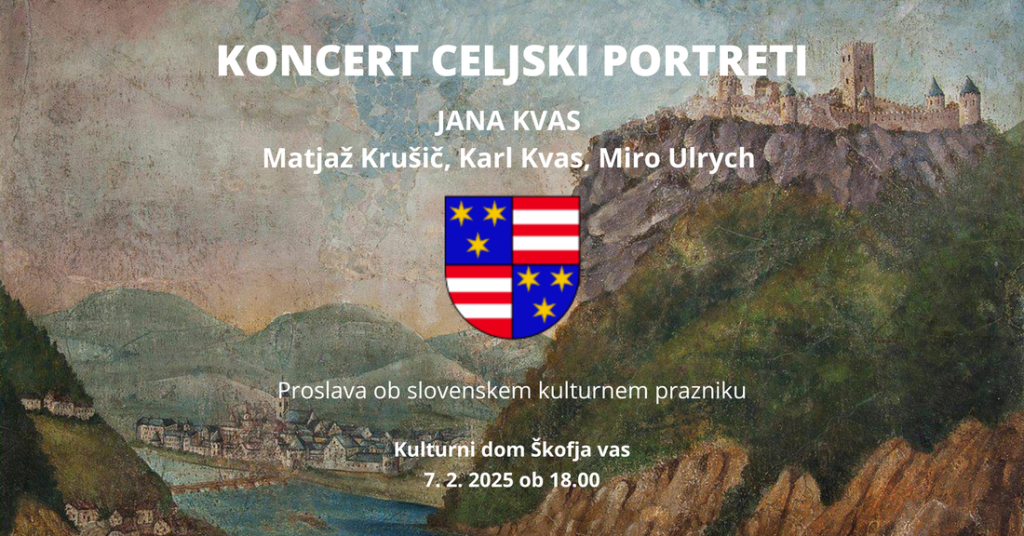 Dragi ljubitelji kulture! Prisrčno vas vabimo, da se nam na predvečer slovenskega kulturnega praznika pridružite pri poslušanju koncerta Celjski portreti. Šansonjerka Jana Kvas vas bo ob spremljavi Karla Kvasa, Mira Ulrycha in Matjaža Krušiča popeljala skozi večer čudovitih melodij.
