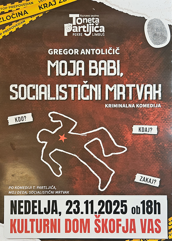 Vabljeni na igro, ki je nastala na podlagi komedije Toneta Partljiča z naslovom Moj deda, socialistični mrtvak, v izvedbi kulturnega društva Pekre-Limbuš, režije Gregorja Antoličiča.